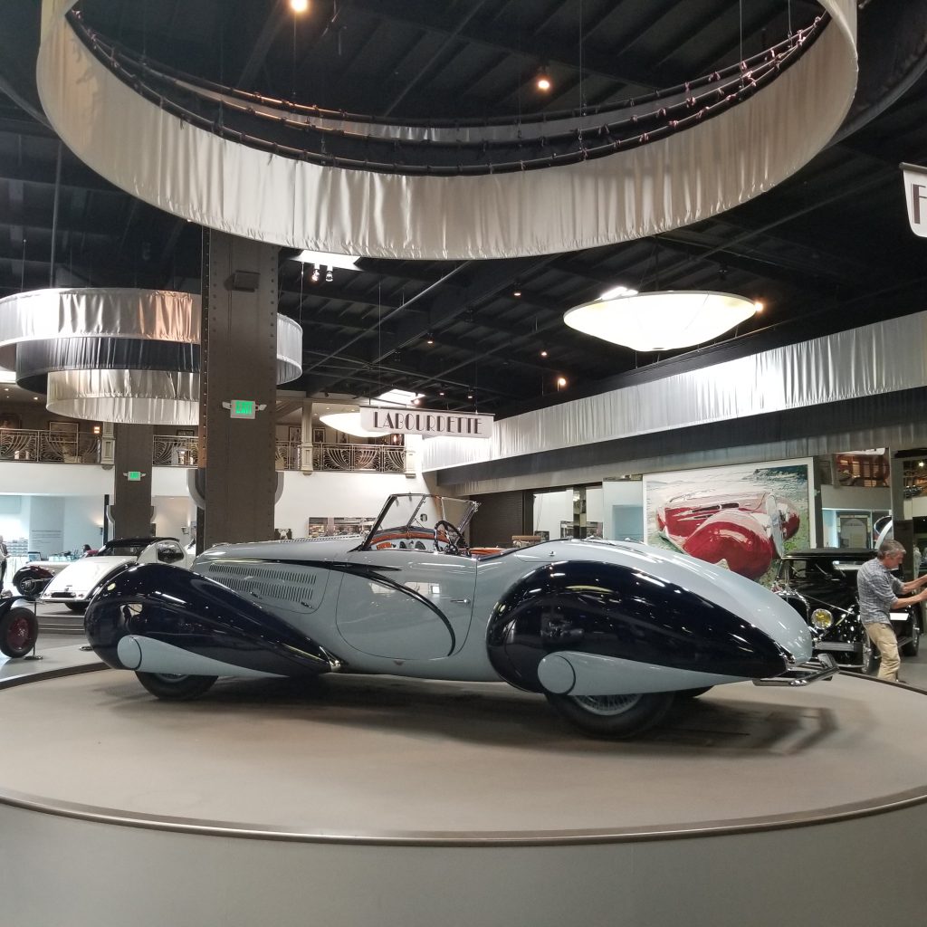 After that, a return in 2020 was an exciting prospect. While some Citroens still remain, this time Delahays, Bugattis and Hispano-Suizas took center stage, along with an invitational car show just outside. The beautiful 1937 Delahaye below was on a rotating stage in the center of the museum’s main floor, befitting its elegance.