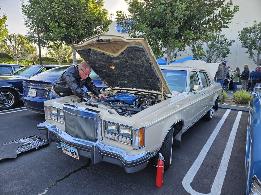 Not everything was perfect. An intrusive Tesla left overnight in our reserved area slightly marred our timeline. But a black car cover quietly made it disappear. 🙂 Mike Steiner also made quick work of a a loose clamp on his 1979 Versailles.