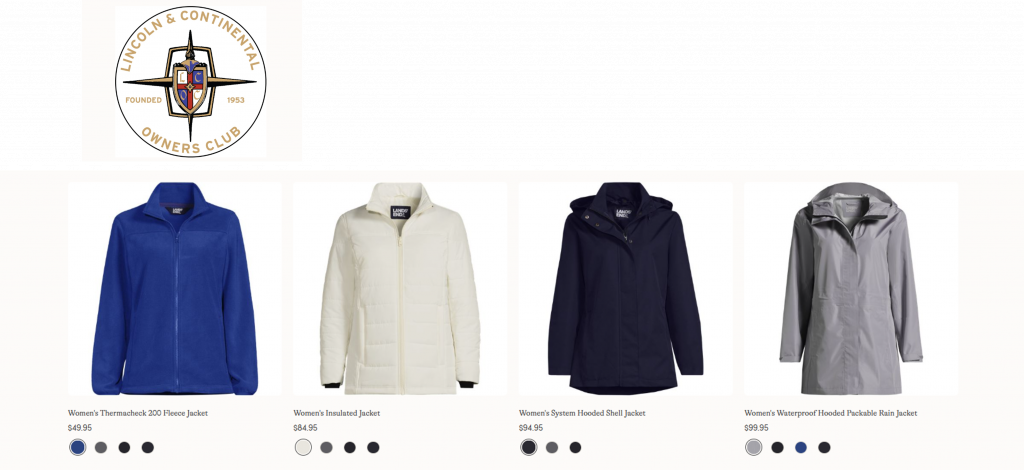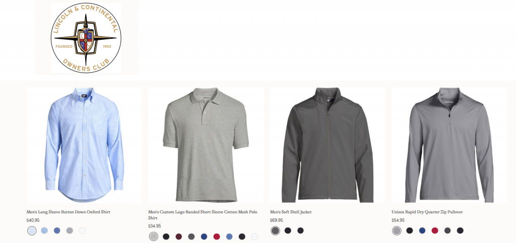 An exciting new Website partnership between LCOC and Lands’ End Outfitters is offering LCOC logo merchandise to all our members just in time for this year’s car show season! Who wouldn’t want to show off their brand new LCOC jacket, shirt, sweater, hoodie, cap, or accessory!