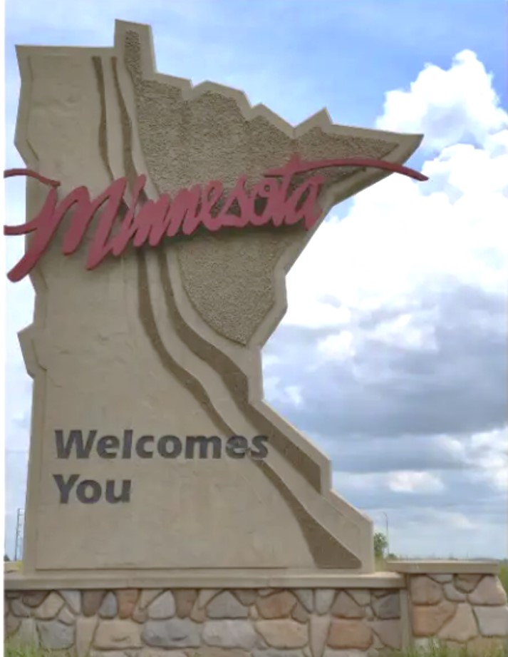 After a fast food lunch in Rockford Illinois we kept on moving. North of Chicago the road started veering northwest. We passed the Wisconsin border and at La Crosse crossed the mighty Mississippi River then headed straight toward Minnesota, where we crossed the state line about 1:45 p.m.
