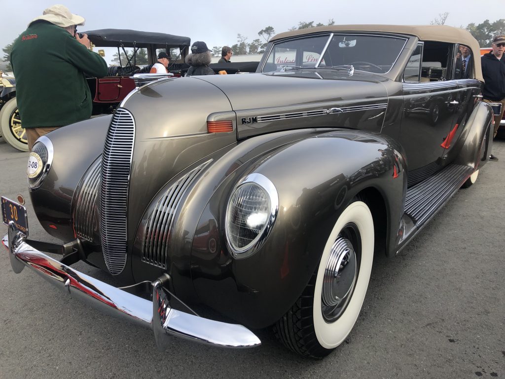 A “stealth” Lincoln with no obvious exterior badging belonging to Ralph Marano was ID’d as a 1938 LIncoln K-12 LeBaron five passenger convertible sedan