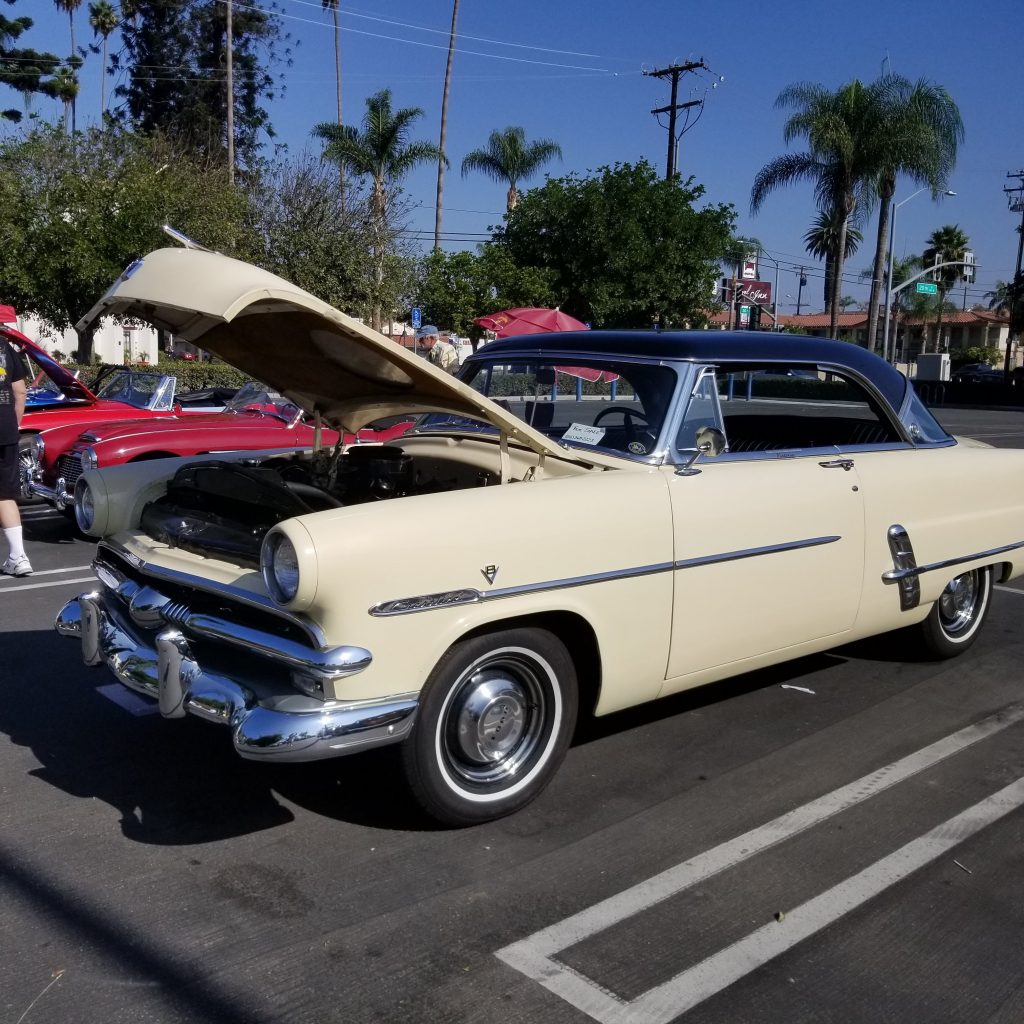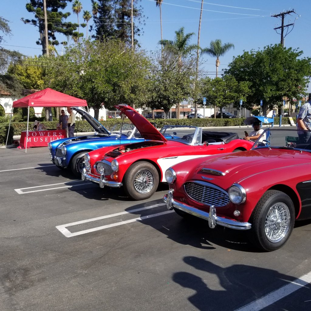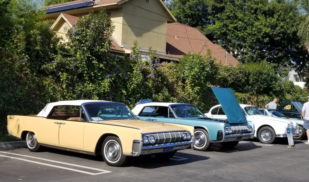 A rare wartime vehicle, a 1942, Ford woodie looking for a new home, was a big crowd pleaser at a Nov 10 car show sponsored by the Bowers Museum celebrating Veterans Day and the 150th anniversary of the City of Santa Ana. LCOC and other local car clubs were invited to participate and 2 LCOC members brought their 1964 Lincoln convertibles to the event, Indeed, Ford products predominated, but other makes also were on view as part of the eclectic field.