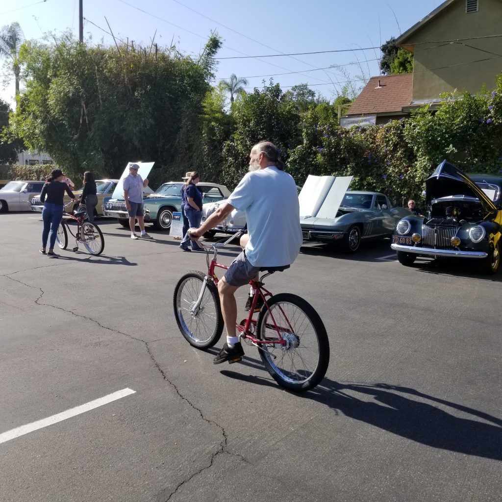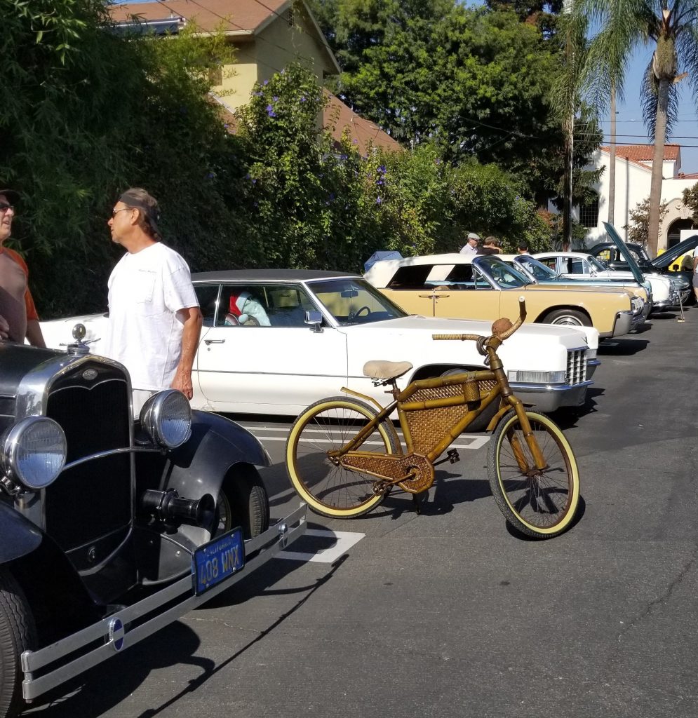 An unexpected development was an unscheduled visit by members of a vintage bicycle club who were passing by and attracted by the old car display.