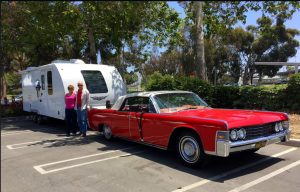 Hal and Carol with their Lincoln and trailer at the 2017 Huntington Beach Concours.